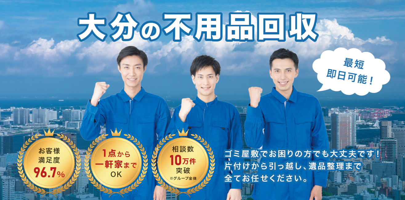 | メリット | 即日回収 大量の不用品に対応 買取にも対応 粗大ゴミの運び出しに対応 土日祝も対応 手間が一切かからない |